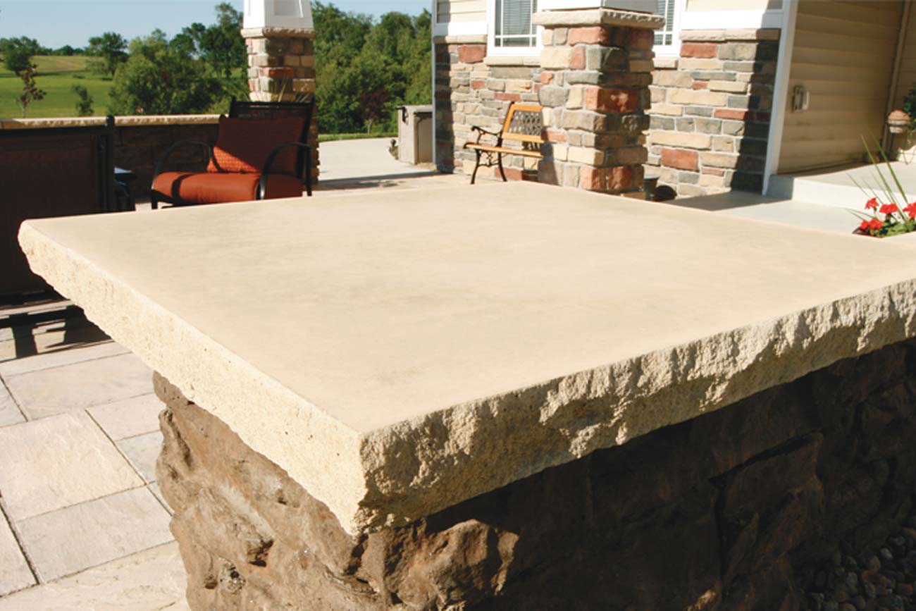 Silver Creek® Chiseled Caps give seat walls, pillars, and islands the expensive look of natural stone. These chiseled Caps and Tops are economical and more convenient than natural stone.