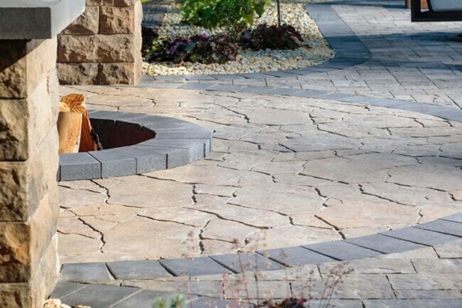 With its irregular shape and textured surface, Mega-Arbel creates the perfect outdoor space that has the look of natural flagstone and the installation ease of a paver. These pavers are perfect for a winding walkway or a rustic fire pit patio escape.