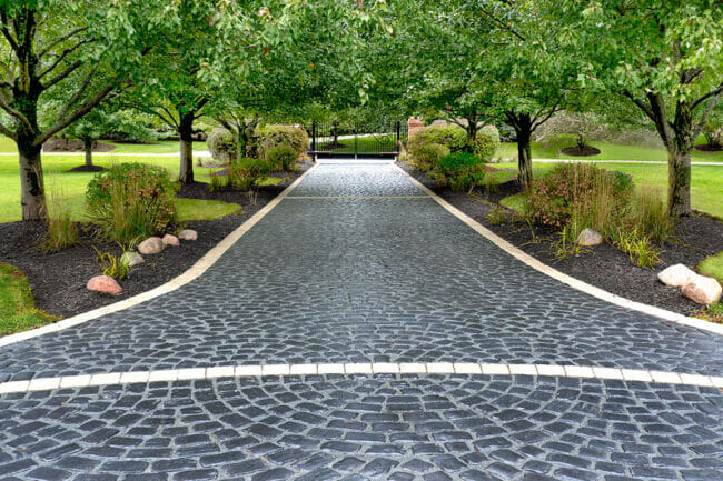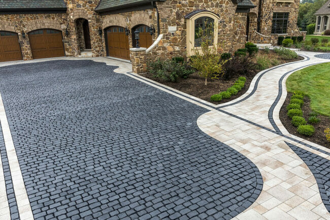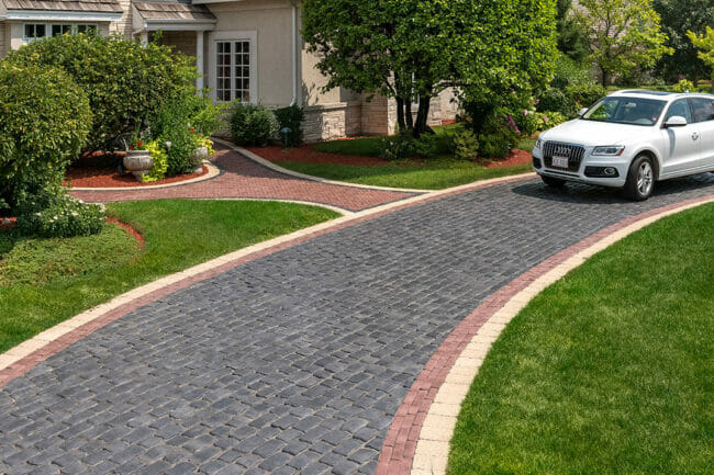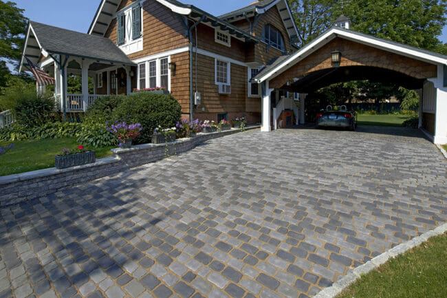 Courtstone pavers bring a luxurious, timeless elegance to driveways and walkways. Courstone uses Ultima™ Concrete Technology which provides up to four times the strength of traditional poured concrete. Using Reala™ Technology, Courtstone is cast from real European cobblestones, but manufactured with a consistent base for efficient installation. Courtstone’s multi-shape combination and rich color palette, make for a frequent choice for borders and banding accents.