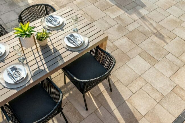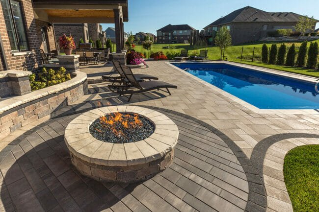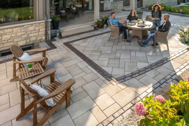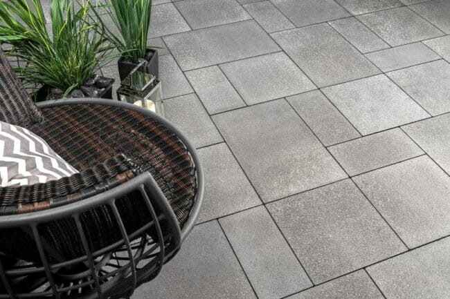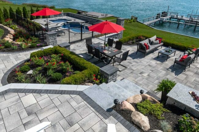 The granite-like appearance of Umbriano makes it a popular choice for sleek, modern landscape paving projects. Its unique, mottled surface is achieved with ColorFusion™ Technology that randomly disperses rich color and granite particles. This creates a natural look with a non-slip texture. Umbriano is factory sealed during the manufacturing process with EasyClean™, an integral surface protection from stains. These features make it ideal for use in high traffic commercial and residential projects.