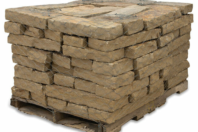 Multi earth tone-colored sandstone. Snapped front & back with natural beds. Available in 8″ or 12″ depths.