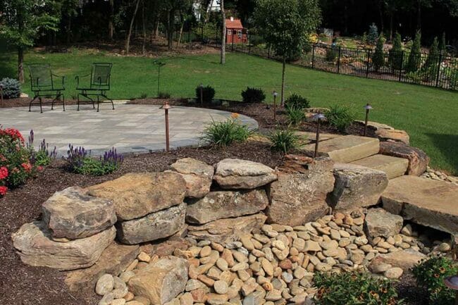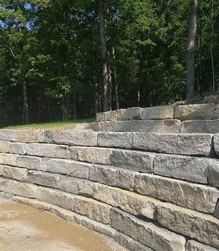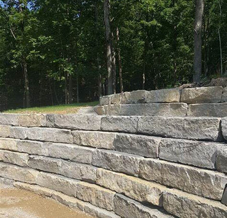 Boulders and ledge are great for individual outcropping in mulch beds, larger retaining walls, and for their natural placement in water features.