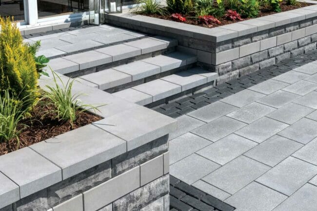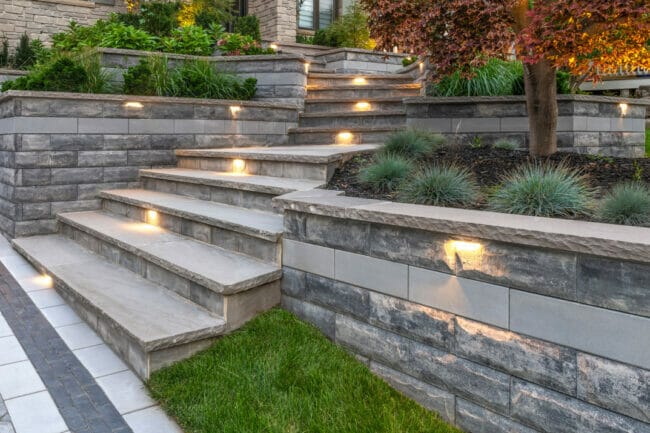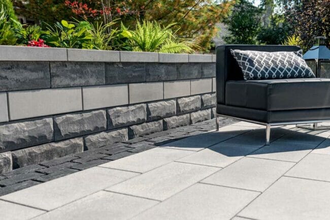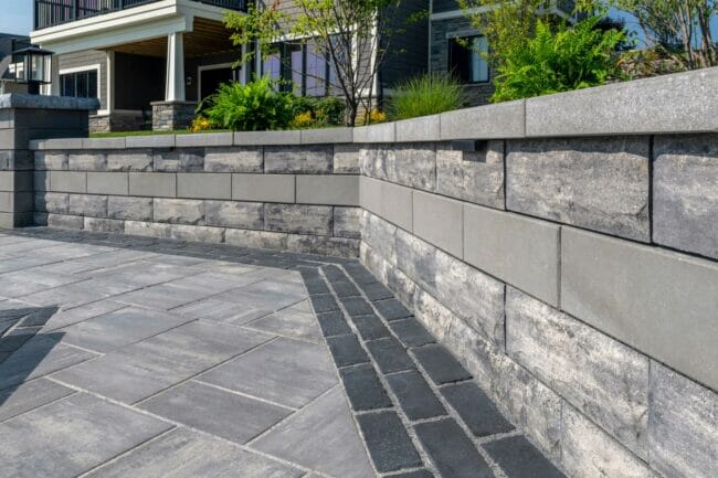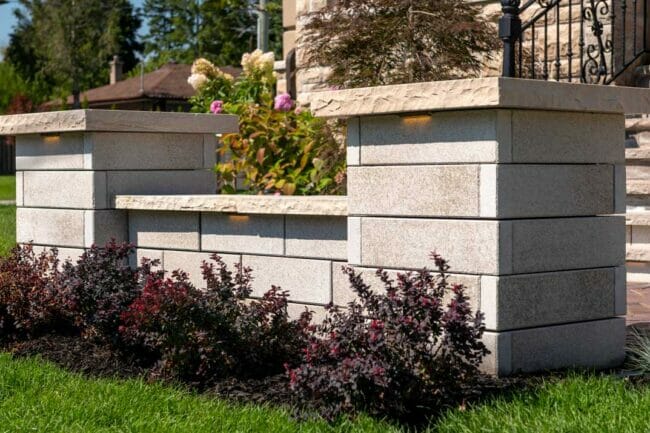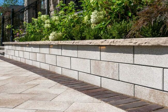 Made by: Unilock – U-Cara – https://commercial.unilock.com/products/a-z-products/all/u-cara-multi-face-wall-system/